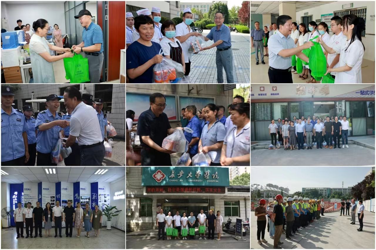 每到一處,校領導都代表學校對他們的辛勤工作表示感謝,對一線工作人員不畏酷暑、愛崗敬業、勇于奉獻的精神進行了高度贊揚,對大家為長安大學基礎建設、校園環境美化、校園安全保障等工作付出的勞動和汗水,為學校建設和高質量發展做出的貢獻表示崇高敬意和親切慰問,特別是招生辦公室和南北校區建筑工地,一個是學校人才培養的重要環節和關鍵起點,一個是改善學校辦學條件的重要保障,希望各部門能保持奮勇爭先的昂揚斗志,一鼓作氣,再創佳績。