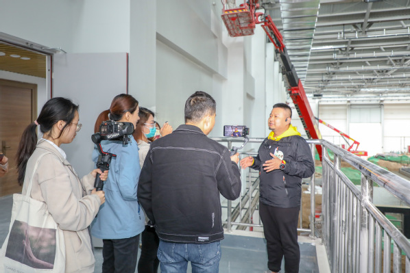 參觀采訪團一行在學(xué)校師生服務(wù)大廳二樓報告廳觀看了我校國家綠色智慧公路交通重點實驗平臺項目建設(shè)專題片,參觀了公路綜合樓內(nèi)部、平臺項目實驗室建設(shè)現(xiàn)場,對正在建設(shè)的道路加速加載大廳進行實地觀摩。