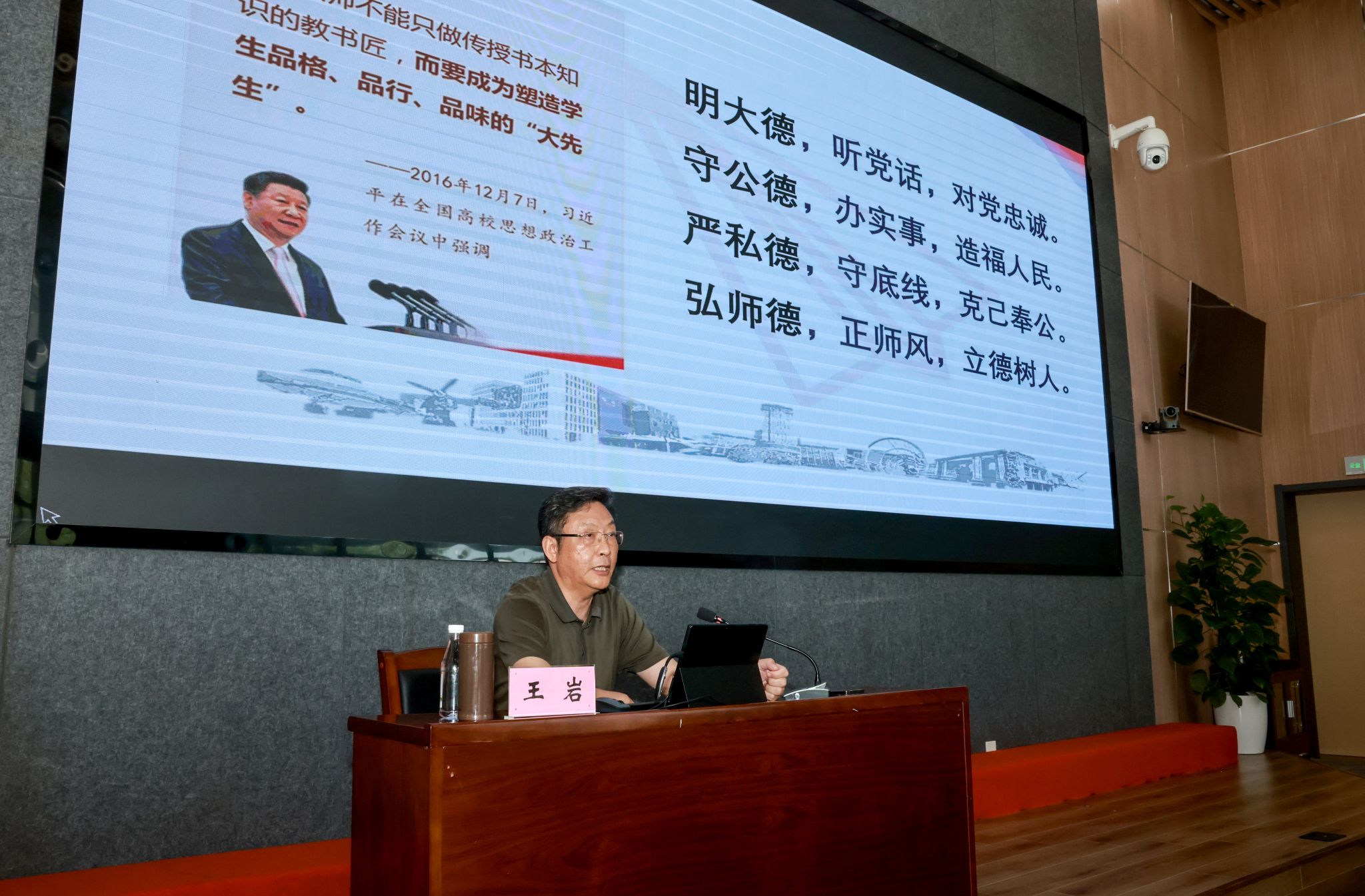 為貫徹落實黨中央、國務院關于全面深化新時代教師隊伍建設改革的決策部署,大力弘揚和傳承教育家精神,持之以恒抓好教師思想政治教育和師德師風建設工作,6月24日下午,學校舉辦“師德大講堂”,邀請南京航空航天大學馬克思主義學院教授、博士生導師、教育部長江學者特聘教授、國家級教學名師王巖教授作題為《新時代師德師風建設的理與路》的專題報告。報告由校長助理杜強主持。