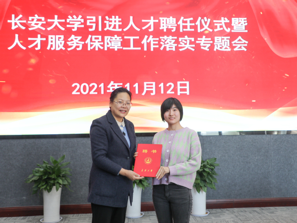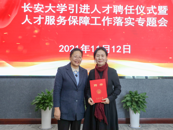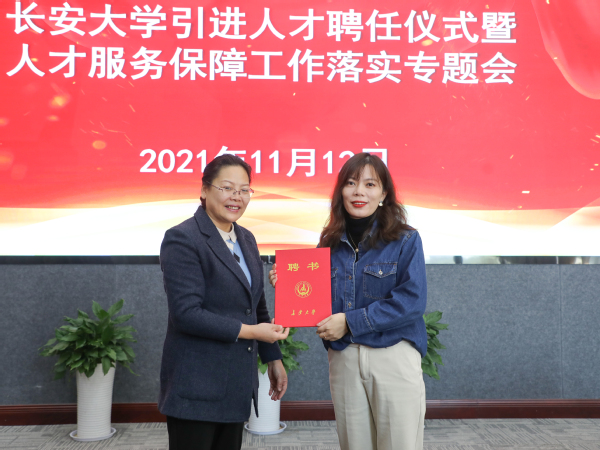 彪曉紅向張紅春、吳曉明、李歡歡、徐盼盼等四位老師頒發了聘書、佩戴了校徽,并代表學校對四位老師加盟長安大學表示歡迎。彪曉紅指出,四位老師都是在本領域取得較高成就或者具有較大潛質的優秀人才,他們的加盟將有力促進我校美育教育和相關學科的建設和發展。希望各位專家和學術骨干發揮學術專長,弘揚科學家精神,在學校人才培養、科學研究、社會服務、文化傳承創新、對外合作交流等方面發揮積極作用,潛心教學科研,面向國際學術前沿、面向國家戰略,開展原創研究,多出成果,出好成果。各相關部門和學院要提高思想認識,發揮用人主體積極作用,落實人才引進培養目標任務,事業留人、感情留人、平臺留人。彪曉紅強調,人才資源是建設一流大學最為關鍵的基礎性、戰略性資源,學校的高質量發展更離不開人才,必須把引進培養高層次人才作為首要任務,在人才引育的“質”和“量”上做好設計,努力培養出更多高水平人才,為學校發展提供源源不斷的人才保障。