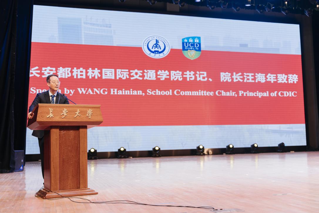 長安都柏林國際交通學院黨總支書記、院長汪海年講話