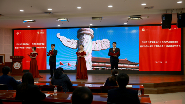 典禮上,黎開誼為第十五期學生骨干培訓班各培養序列授旗。學工部副部長陳晏宣讀結業及表彰決定。校團委副書記李陽安排部署學校共青團學習宣傳貫徹黨的二十大精神及第十五期學生骨干培訓班工作。校團委兼職副書記岳智浩作第十四期學生骨干培訓班工作匯報。第十五期學生骨干培訓班學員代表王碩在發言中表示將珍惜學習機會,努力成長為一名對黨忠誠、信仰堅定、素質優良、作風過硬的新時代青年馬克思主義者!