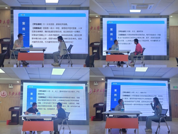 案例研討環節中,來自不同小組的四名輔導員白濤、周艷龍、楊海城、秦豐結合自身在處理宿舍矛盾中的工作經驗,圍繞各類宿舍矛盾案例與學生助演進行了談心談話。曹夢蕾根據案例分享了宿舍矛盾的解決思路和經驗啟示,各研討小組對處理宿舍矛盾過程中的問題和經驗進行了交流。