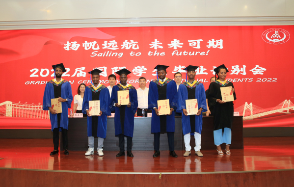 2022屆境內外國際畢業生代表、運輸工程學院碩士研究生秦桂及建筑工程學院碩士研究生賽米奧分別發言,衷心感謝母校、學院以及老師們的辛勤培育,表示將心懷感恩、繼續前行,為建設人類命運共同體貢獻力量。