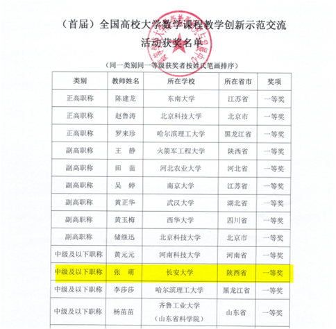近日,首屆全國高校大學數學課程教學創新示范交流活動結果揭曉,我校理學院教師張萌榮獲全國一等獎。