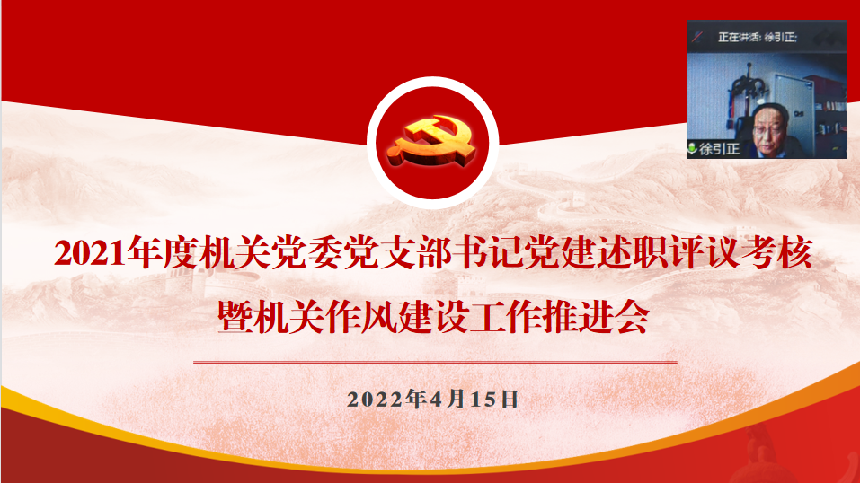 2022年4月15日下午,機關黨委線上召開2021年度黨支部書記黨建述職評議考核暨機關作風建設工作推進會。校黨委副書記徐引正,校黨委常委李文雄、王耀文,機關黨委委員、紀委委員,機關各黨支部書記近50人參加了會議。會議由機關黨委書記李金和主持。