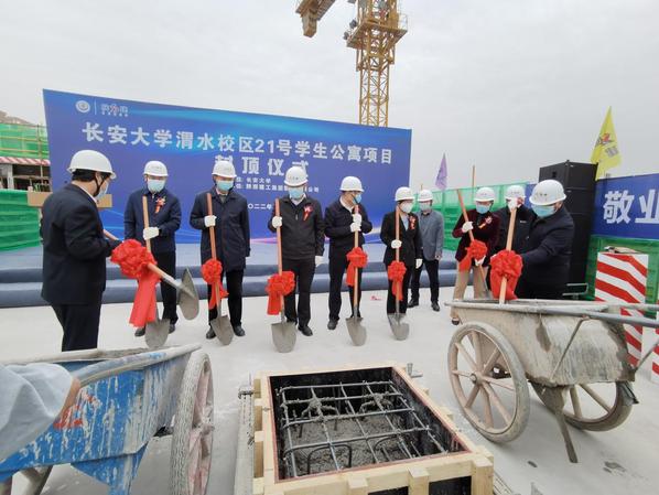 校長沙愛民宣布渭水校區21號學生公寓項目主體封頂。沙愛民在致辭中表示,我校渭水校區21號學生公寓項目是落實學校校園總體規劃,完善教學基礎配套設施,改善學生住宿條件,實現“雙一流”建設目標的重要育人工程。項目建成將進一步優化利用校園空間,提升學生生活住宿品質和校園文化氛圍,有效改善學校育人環境。他指出,項目自開工以來,在基建處和學校有關部門及施工、監理、勘察、設計等單位的共同努力下,克服治污減霾、新冠肺炎疫情、全運會召開、連續極端降雨等各種不利因素的影響,全力推進工程建設。項目的主體封頂,既是項目建設取得的重要階段性成果,也為最終竣工投入使用、發揮作用奠定了堅實基礎,希望基建處、相關部門、施工單位及所有參建單位,堅持質量為本,搶抓工期,實現疫情防控和后續設備安裝、裝飾裝修等施工建設“兩不誤”,高效優質安全地完成建設任務,努力將該項目打造成為學校滿意、師生認可的精品工程,確保項目按期投入使用。