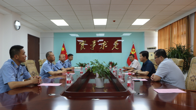 7月16日,校黨委副書記黎開(kāi)誼帶領(lǐng)學(xué)工部、武裝部負(fù)責(zé)人走訪慰問(wèn)了學(xué)生軍訓(xùn)承訓(xùn)部隊(duì)空軍工程大學(xué)防空反導(dǎo)學(xué)院??哲姽こ檀髮W(xué)防空反導(dǎo)學(xué)院副政治委員湯煜接待我校一行,并舉行了座談會(huì)。