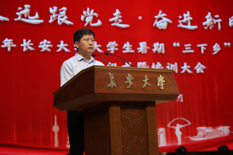 7月6日晚,學校2021年大學生暑期文化科技衛生“三下鄉”社會實踐出征儀式暨培訓大會在北校區長安文化藝術中心大禮堂舉行。校黨委副書記黎開誼出席大會,宣傳部、學工部、研工部、教務處、保衛處、校醫院等部門主要負責人,各院系主管學生工作的黨政領導、校團委全體干部、各分團委書記、社會實踐立項團隊指導教師及隊員代表參加了大會。校團委書記張永主持儀式。