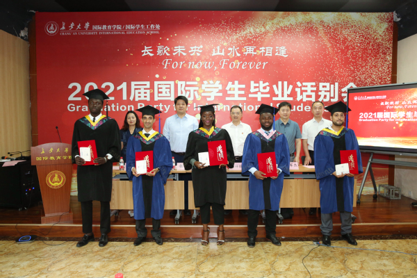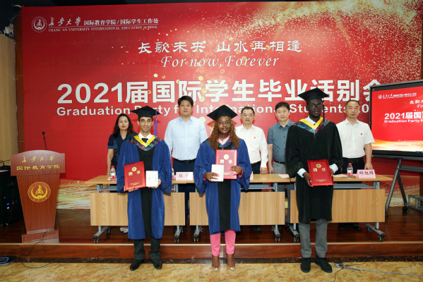 6月28日下午,我校2021屆國際學生畢業話別會在長安大學校本部國際教育學院多功能廳順利舉行。26名本科生,37名研究生順利畢業,開啟人生新征程。副校長趙祥模,國際教育學院、社會合作處、研究生院、教務處及各學院負責人、教師代表等出席本次會議。會議采用“線上+線下”相結合的方式,百余名境外畢業生及親友相聚“云端”,共同見證這一重要時刻。話別會由國際學院副院長呂衛東主持。
