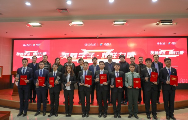 與會領導嘉賓為獲獎個人或團隊頒獎。機械學院林啟和、研究生支教團成員王銘作為獲獎代表分享發言。