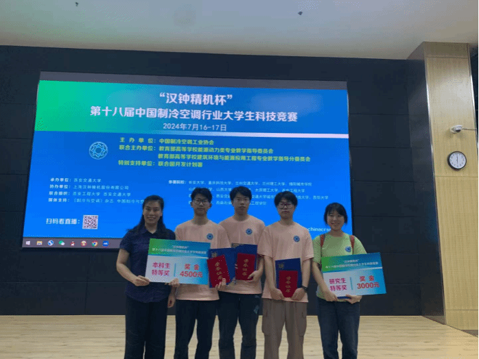 7月17日,“漢鐘精機杯”第十八屆中國制冷空調行業大學生科技競賽決賽在西安交通大學舉行。我校建筑環境與能源應用工程系教師谷雅秀指導,建筑環境與能源應用工程專業2021級本科生吳葉承、鐘駿雄、崔節尚組建的“長冷智匯”隊,以及谷雅秀指導的2022級碩士生李雅琪,分別以本科生組及研究生組總分排名第一的成績獲得特等獎。