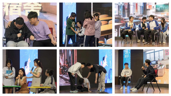 本次心理劇創演大賽全校共26支參賽隊參加,歷經劇本篩選、初賽、復賽、決賽四個環節,最終六個劇組站上決賽舞臺。《敞開心房,你亦是光》中的內向女孩小靜在同學的幫助下逐漸認可接納自己,并收獲了溫暖的友誼;《我在你的未來》用一個虛實交錯的故事提醒我們牢記用法律武器反抗校園霸凌;《救贖》的主人公因為虛榮心深陷網貸深陷泥沼,最終在親朋好友的愛中幡然醒悟;《像風一樣》聚焦“家庭控制”這一話題探討了孩子如何發展自我的問題;《反方向的鐘》和《掛件,“掛”件》以類似童話的形式分別強調了選擇和努力的重要意義。