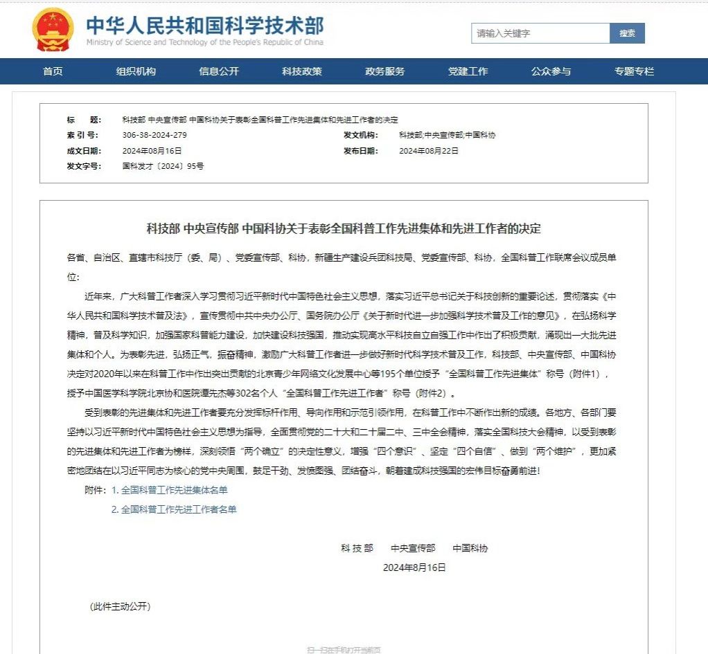 8月22日,科技部、中央宣傳部、中國科協發布《關于表彰全國科普工作先進集體和先進工作者的決定》,長安大學公路交通博物館榮獲“全國科普工作先進集體”榮譽稱號。