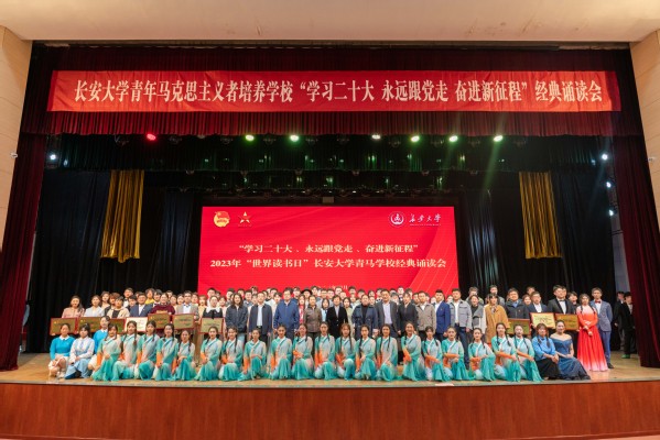 4月23日晚,長安大學(xué)青年馬克思主義者培養(yǎng)學(xué)校“學(xué)習(xí)二十大、永遠(yuǎn)跟黨走、奮進(jìn)新征程”經(jīng)典誦讀會(huì)決賽在長安文化藝術(shù)中心大禮堂舉行。校黨委宣傳部常務(wù)副部長郗波、學(xué)工部部長張騫文、研工部部長高天智、黨校常務(wù)副校長閆妍、藝術(shù)教育中心副主任陳晏、校團(tuán)委書記張永、延安新聞紀(jì)念館副館長李英翠、楊家?guī)X革命舊址管理處副主任薛健等領(lǐng)導(dǎo)專家出席誦讀會(huì)。全體專職團(tuán)干部及青馬學(xué)員代表共1000余人觀看比賽。