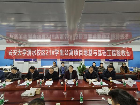 11月19日下午,渭水校區(qū)21號學(xué)生公寓項(xiàng)目地基與基礎(chǔ)工程驗(yàn)收會召開。副校長朱杰君,學(xué)校建設(shè)工程質(zhì)量安全監(jiān)督評定小組成員單位校辦、計(jì)財(cái)處、審計(jì)處、國資處、后勤處、保衛(wèi)處、基建處等部門負(fù)責(zé)人,學(xué)校建設(shè)工程質(zhì)量安全監(jiān)督評定小組特聘專家,項(xiàng)目勘察、設(shè)計(jì),地基檢測、施工、監(jiān)理及建設(shè)單位等相關(guān)人員70余人出席驗(yàn)收會,會議由基建處處長石瑞平主持。