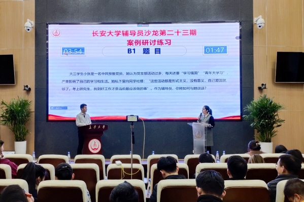 為增強經驗學習實效,沙龍第二環節進行了案例研討練習。馬克思主義學院楊帆、外國語學院曹夢蕾、運輸工程學院田弘長三位輔導員針對學業困難、心理健康、就業創業、網絡思政教育等大學生思想政治教育的熱點、難點問題,在10分鐘作答時間內條理清晰地提出問題所在、解決問題的思路、實施辦法及相關啟示。劉國權從破題方法、解題思路等方面進行了點評,提出了中肯的意見和建議,為今后我校輔導員參賽給出了方向,教授了技巧。