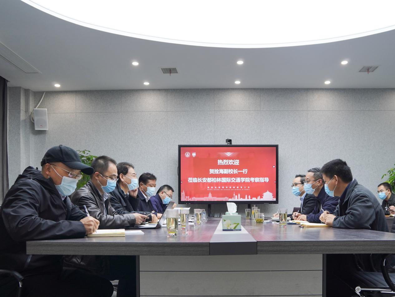 10月26日上午,副校長賀拴海到長安都柏林國際交通學院調研綜合改革建設工作,發展規劃處、教務處、人事處、計劃財務處、國際合作與交流處負責人參加調研。座談會在鴻遠教學樓四層會議室召開。學院全體院領導、各部門負責人參加了座談會。會議由賀拴海主持。