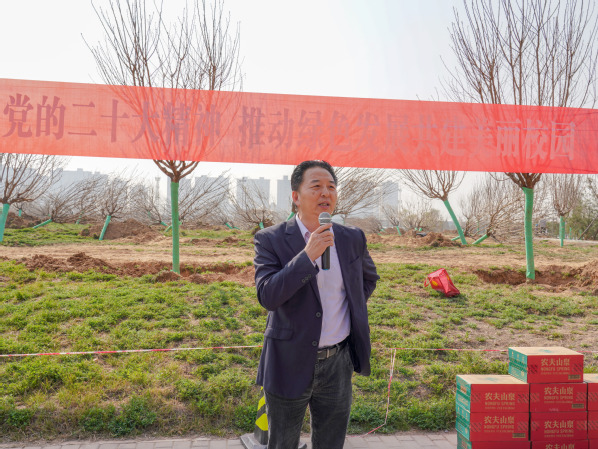 朱杰君在講話中指出,在植樹節到來之際,學校舉辦“學習宣傳貫徹黨的二十大精神推動綠色發展共建美麗校園”植樹活動,是充分踐行黨的二十大報告提出的“尊重自然、順應自然、保護自然是全面建設社會主義現代化國家的內在要求。必須牢固樹立和踐行綠水青山就是金山銀山的理念,站在人與自然和諧共生的高度謀劃發展”的要求。環境育人是大學教育不可或缺的重要組成部分。建設美麗文明的校園環境是提升校園文化內涵、提高育人水平的重要途徑,是學校踐行“三全育人”要求,落實高等教育“立德樹人”根本任務的重要舉措。我們要優化育人環境,充分發揮環境育人的重要作用,努力將育人要素融入到校園每一個角落,讓一草一木傳情,使一磚一瓦育人。