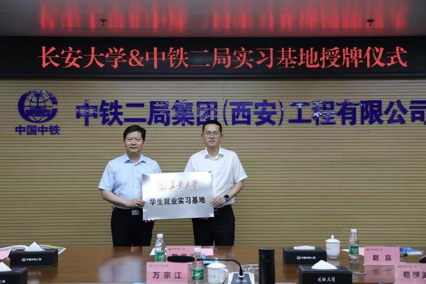 座談會上,黎開誼代表學校向中鐵二局授予“長安大學學生就業實習基地”牌匾。
