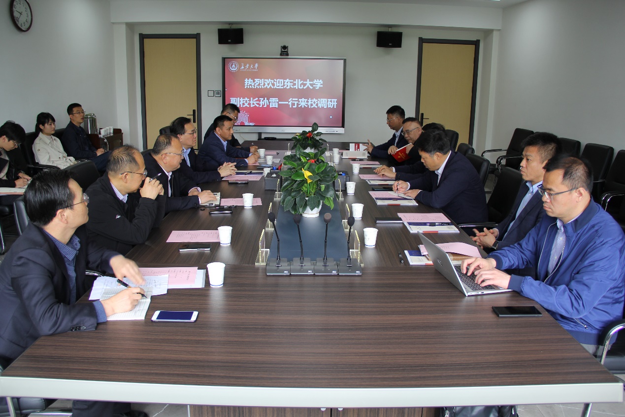 5月11日上午,東北大學黨委常委、副校長孫雷一行來校調研交流,我校黨委常委、副校長王建偉出席。