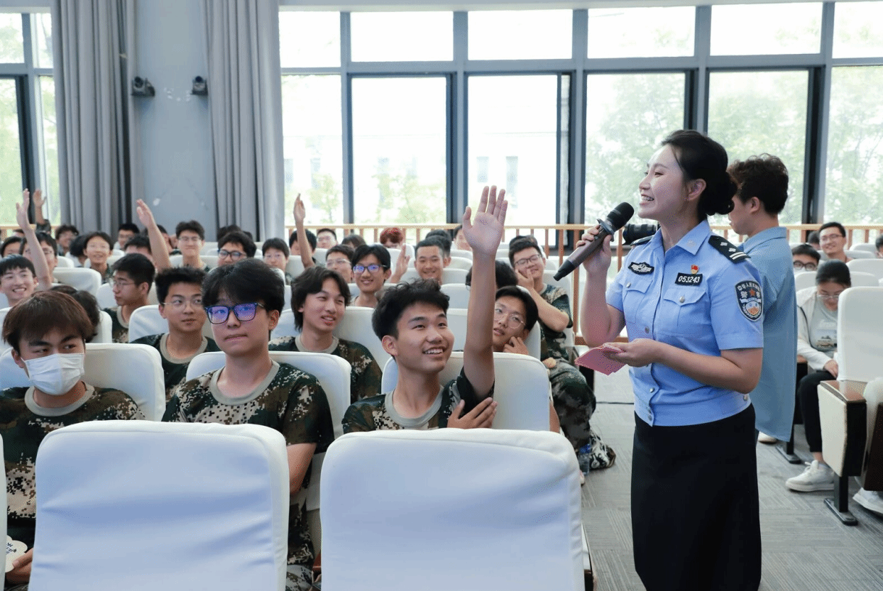 西安市公安局未央分局反詐中心中隊長李珊開展反詐知識宣講,播放反詐相關案例視頻并進行有獎問答,加深師生對反電信詐騙相關知識的了解,提升個人防范意識。陜西女子戒毒所警花普法宣傳隊為大家開展了禁毒知識宣講,通過實物模型展示了傳統毒品與新型毒品的種類,增強師生對新型毒品的辨別能力。