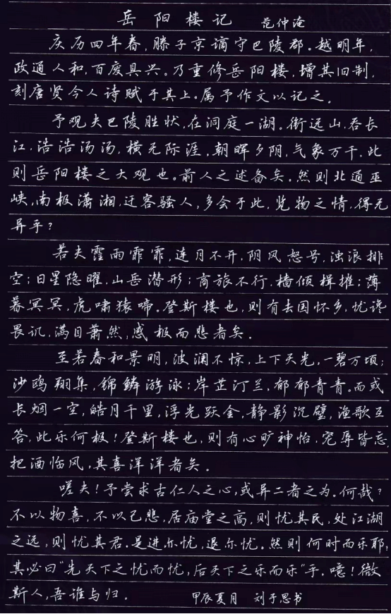劉于思硬筆書法作品《岳陽樓記》