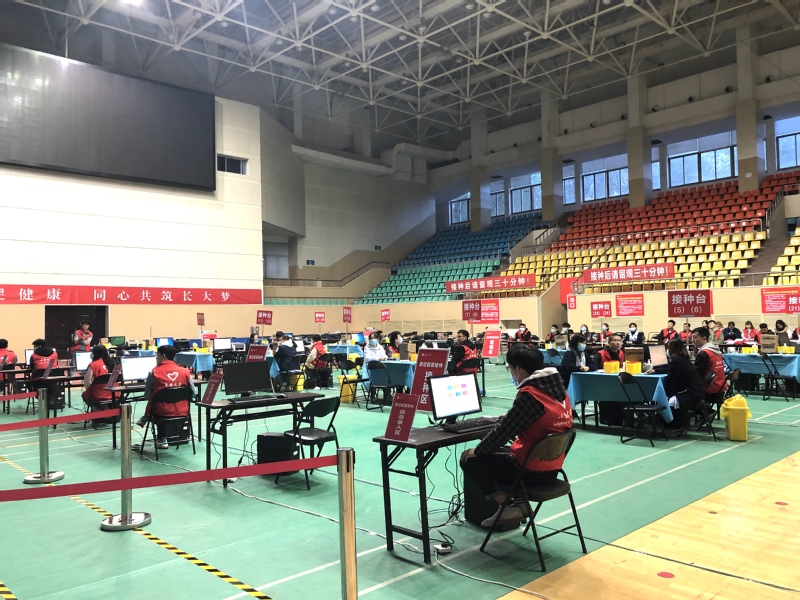 為了切實做好學校新冠病毒疫苗接種工作,有準備地應對接種過程中可能出現(xiàn)的各種突發(fā)情況,保障我校廣大師生的健康安全,4月1日下午,我校在南校區(qū)北院體育館舉辦了新冠病毒疫苗接種應急演練。本次活動共有40余名醫(yī)護人員、200余名志愿者參加,校長辦公室、宣傳部、研工部、信網(wǎng)處、后勤處、保衛(wèi)處、校團委、南校區(qū)辦、校醫(yī)院、體育部、校園卡管理中心等部門參與了本次演練。