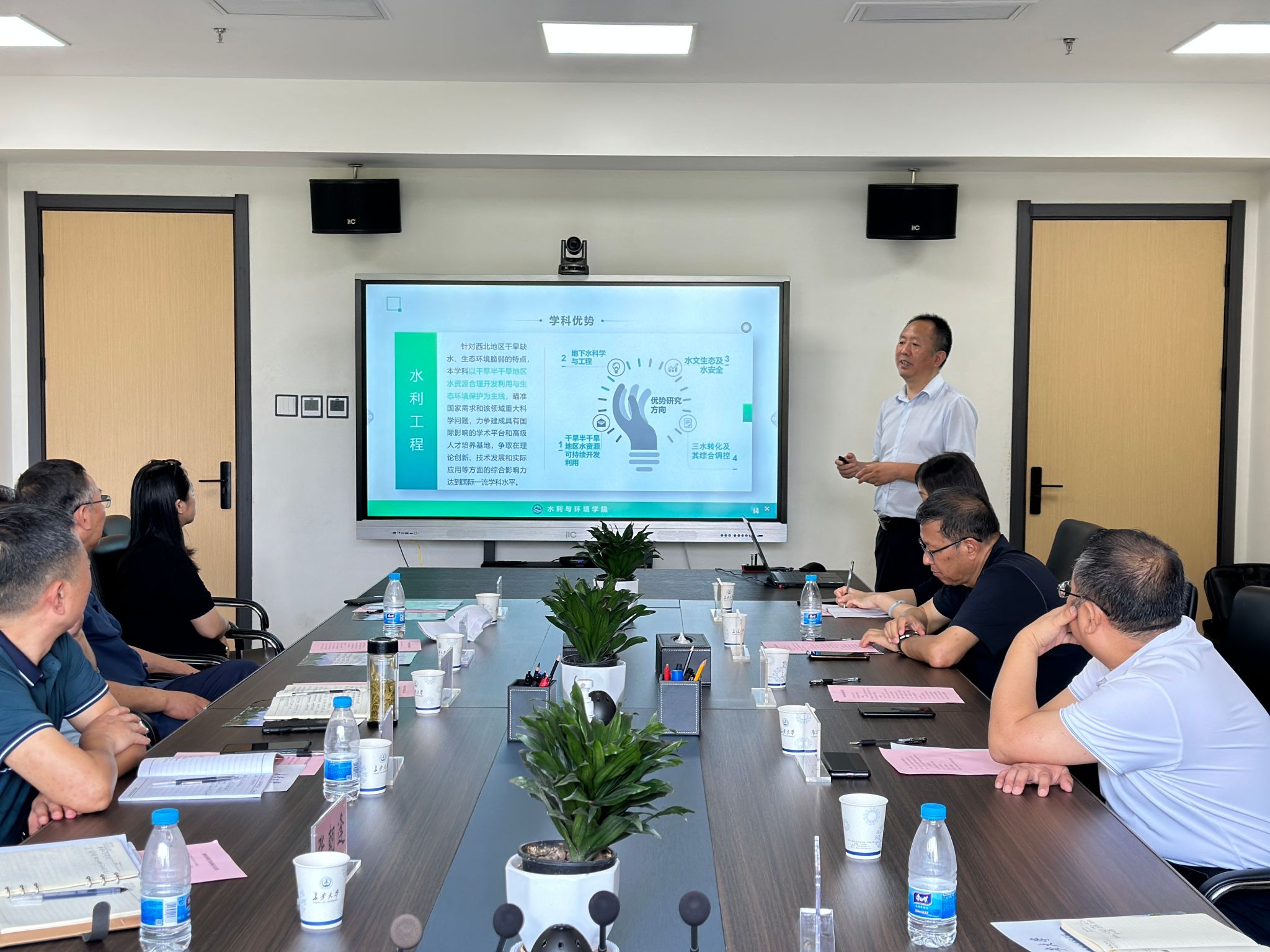 9月5日,陜西省水利廳總工程師張解生帶隊赴我校調研。我校黨委副書記黎開誼出席調研會。西安市人民政府參事、省水利廳科技處、省地下水保護與監測中心、中國鐵塔陜西分公司等相關人員,我校水環學院黨委書記鄧紅章、院長白波、副院長段磊等參加調研會。
