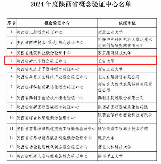 近日,陜西省科技廳公示了2024年度概念驗證中心和中試基地認定名單,汽車學院牽頭申報的“陜西省新汽車概念驗證中心”成功獲批。該中心是汽車學院在科技成果轉化方面的新突破,也是長安大學首個概念驗證中心,全省首個專注于驗證汽車新技術、解決汽車產業科技成果轉化“最初一公里”問題的科技成果驗證平臺。