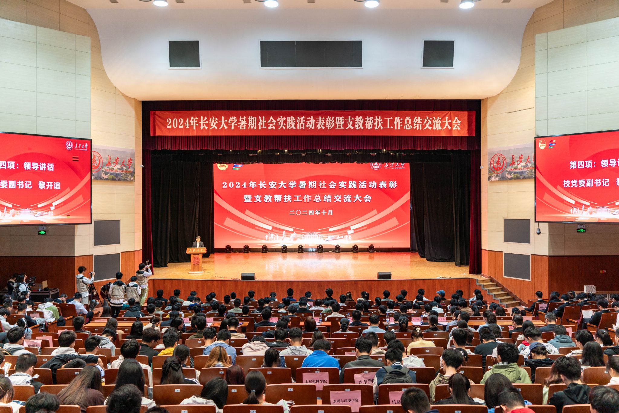 10月23日下午,2024年長安大學暑期社會實踐活動表彰暨支教幫扶工作總結交流大會在長安文化藝術中心大禮堂舉行。校黨委副書記黎開誼出席會議并講話。校團委書記丁芝娟主持會議。