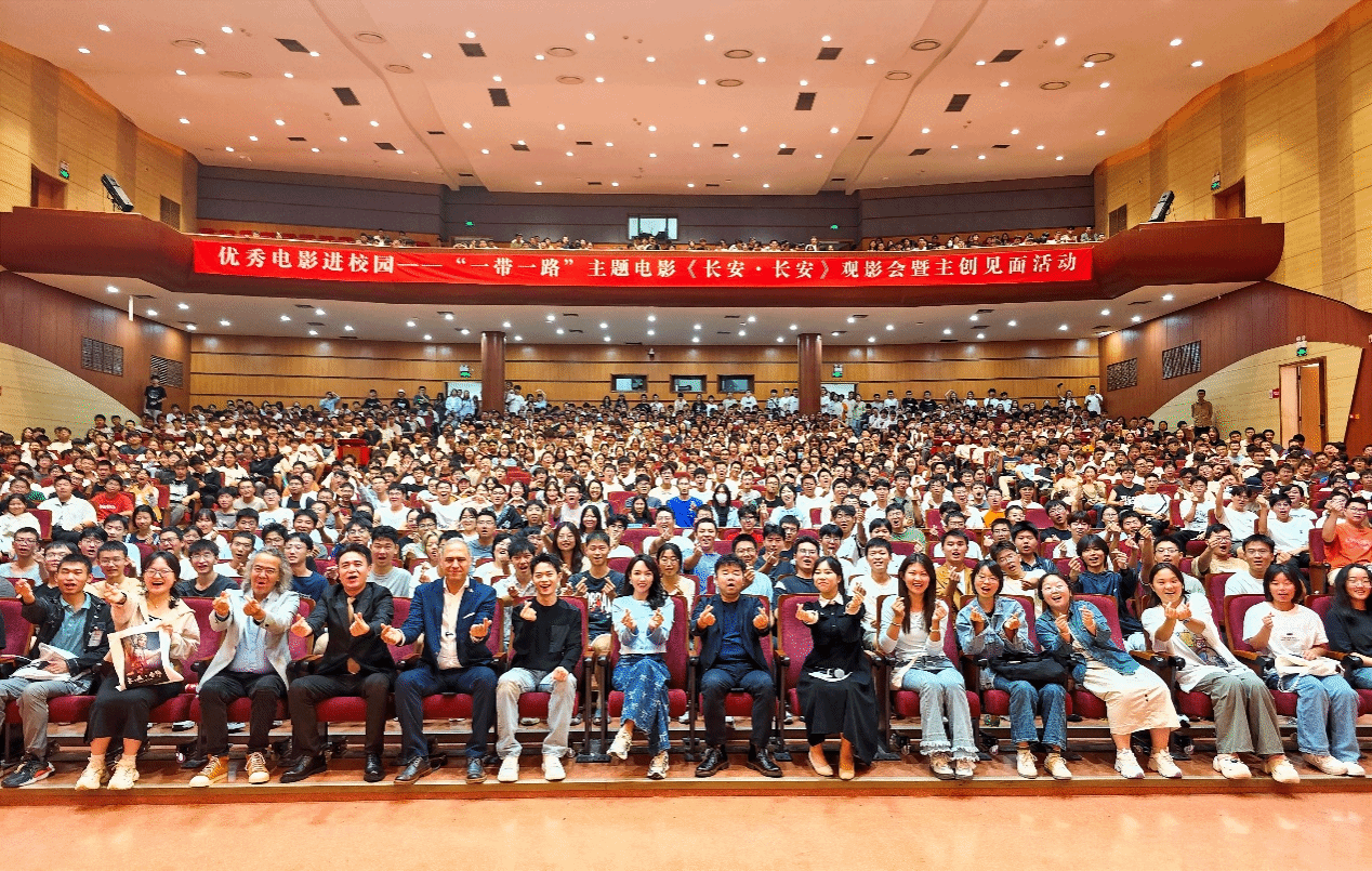 點映結束后,主創團隊與現場觀眾分享了影片背后的創作故事與文化靈感,講述了影片的創作背景和初衷,分享了創作經歷及對角色理解的把握,這部影片不僅展現了古城西安的千年風華與現代電影藝術的完美融合,更傳遞了不同文化背景下人們對于愛與夢想的共同追求與堅守。觀影過程中,現場師生不僅為其美好的愛情故事而動容,還因其故事的文化底蘊產生了深深的共鳴?;迎h節,觀眾積極提問,與主創團隊進行了熱烈的交流。電影《長安·長安》的點映禮在熱烈的掌聲與贊譽聲中圓滿結束。