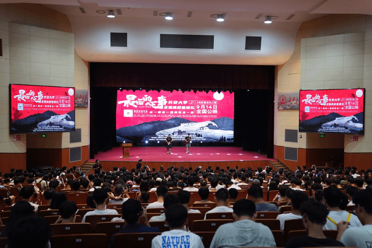 9月13日,電影《最后的心事》全國高校首映禮在長安大學北校區長安文化藝術中心大禮堂舉行。《最后的心事》是長安大學人文學院2013屆廣播電視編導專業校友龔洵編劇導演的首部全國上映影片,影片呈現了關于中國式親情、鄉土與歸屬感的動人故事。