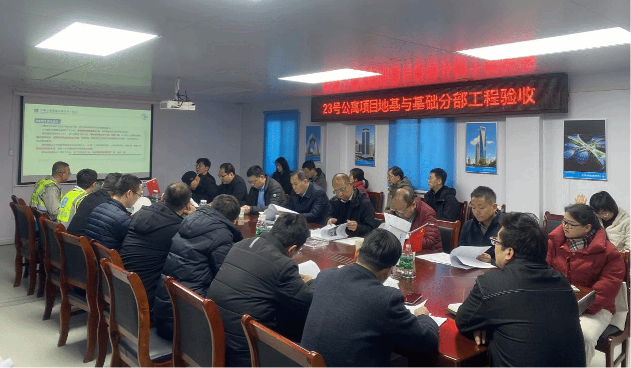 驗收會議包括會議匯報、實體檢查驗收、資料檢查驗收三個環節。驗收會上,基建處、施工單位、監理單位分別就工程概況、自評報告及質量評估報告進行了詳細匯報。結合實體驗收和資料檢查情況,與會單位分別發表驗收意見,一致認為項目達到國家建設工程質量驗收標準,同意工程質量為合格,項目地基與基礎工程通過驗收。