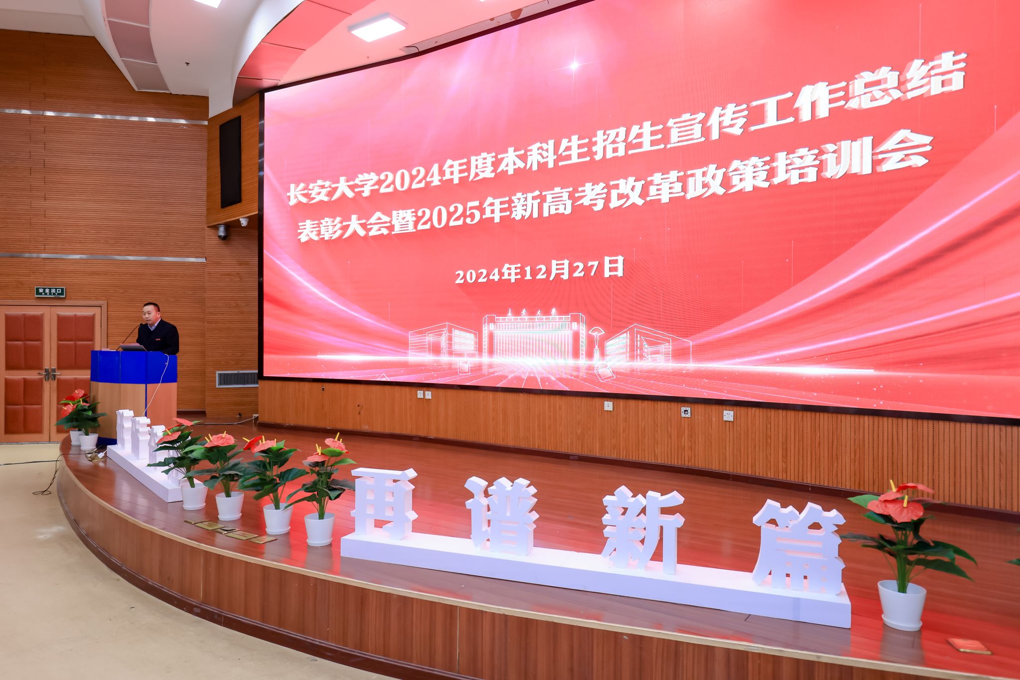 12月27日下午,學校在北校區圖書館西側裙樓報告廳舉辦長安大學2024年度本科生招生宣傳工作總結表彰大會暨2025年新高考改革政策培訓會。校黨委副書記黎開誼出席大會。會議由招生就業處處長鄧紅章主持。