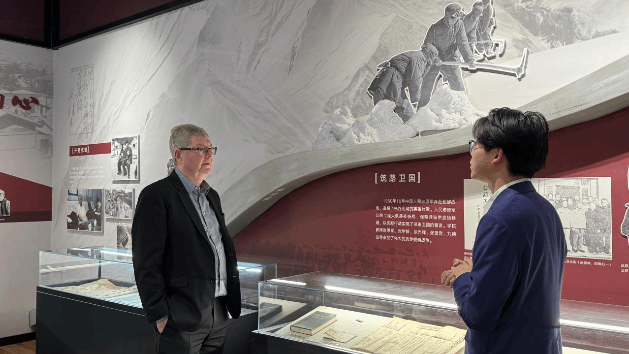 會后,大衛·卡德維爾教授一行參觀了學校校史館。