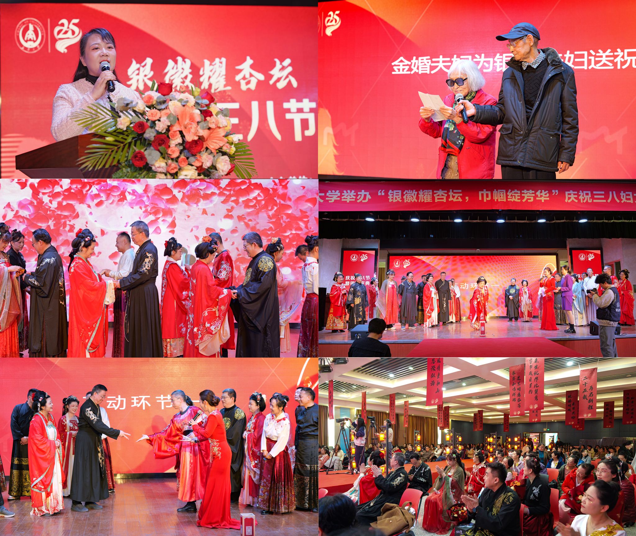 3月7日,在“三八”國際婦女節(jié)來臨之際,為了致敬歲月里的堅守與浪漫,同時感恩教職工家庭的溫暖付出,弘揚美好家風(fēng),增強全校教職工的凝聚力與歸屬感,學(xué)校在南校區(qū)東院雁博園四樓活動室舉辦“銀徽耀杏壇,巾幗綻芳華” 慶祝三八節(jié)暨銀婚慶典活動,十余對攜手走過25余載風(fēng)雨的教職工夫婦齊聚一堂,重溫愛情誓言,共話歲月溫情。全校300余名女教職工代表觀看活動。