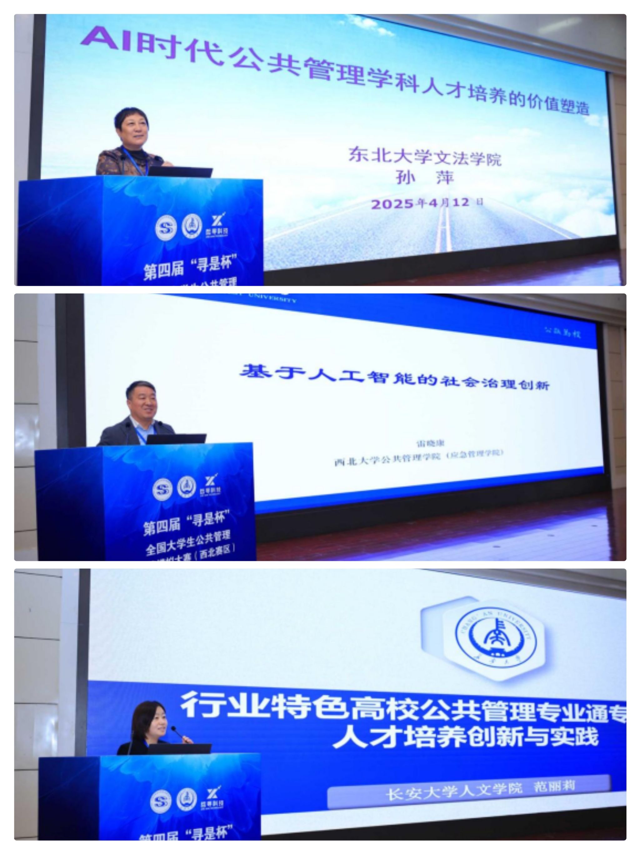 期間,舉辦了以“人工智能時代公共管理專業學科競賽與人才培養”為主題的主旨報告會,東北大學孫萍教授、西北大學雷曉康教授、長安大學范麗莉教授作主旨報告。