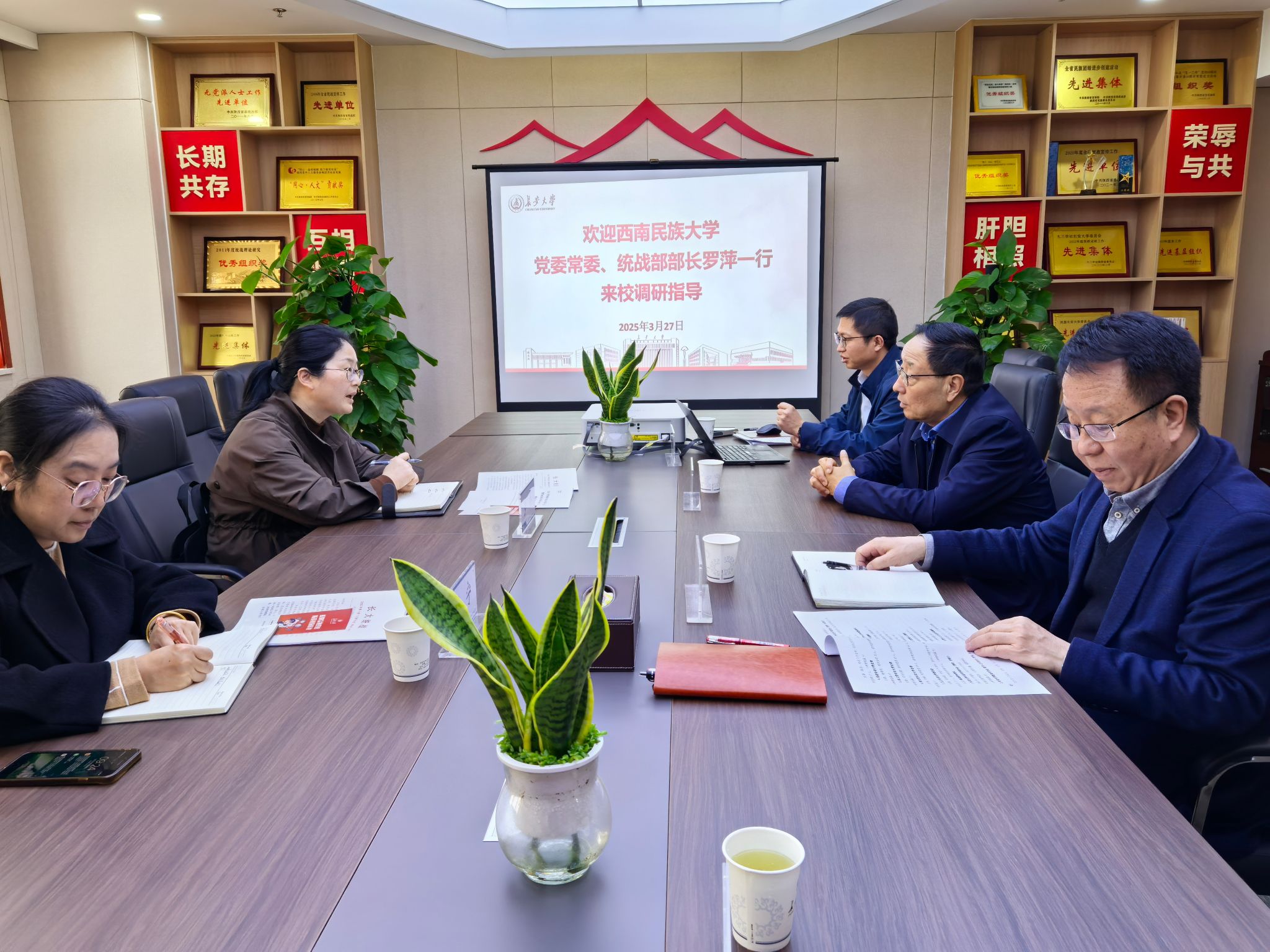 3月27日,西南民族大學黨委常委、統(tǒng)戰(zhàn)部部長羅萍一行來校調(diào)研座談。校黨委副書記徐引正出席座談會,統(tǒng)戰(zhàn)部部長李國光主持座談會。