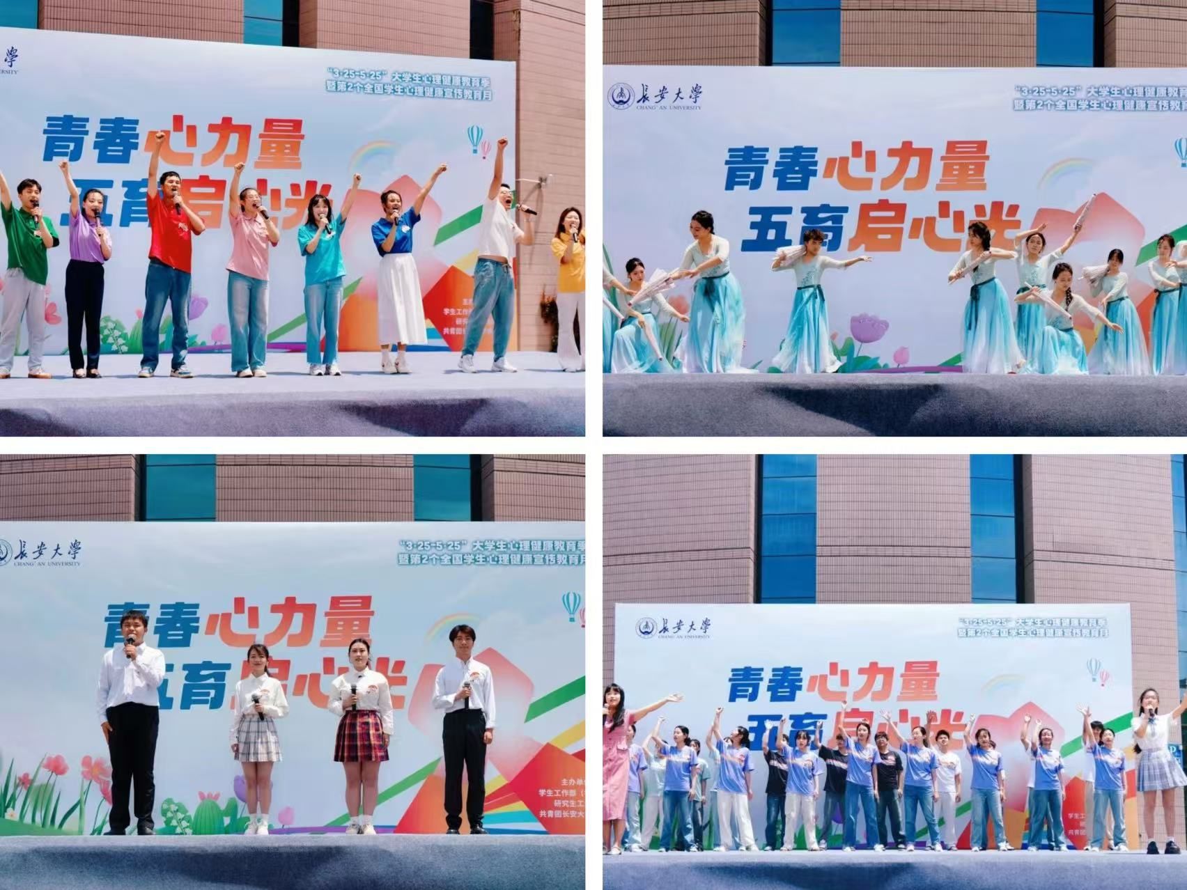 活動以“青春心力量·五育啟心光”為主題,將心理健康教育與德智培養(yǎng)、體育鍛煉、勞動實(shí)踐、藝術(shù)表達(dá)相結(jié)合,引導(dǎo)學(xué)生形成科學(xué)的心理健康觀念,掌握有效的壓力調(diào)適方法,培育健康向上的生活態(tài)度。開幕式上,彩虹心理協(xié)會的指導(dǎo)教師和同學(xué)們通過歌唱、舞蹈和詩朗誦等方式傳遞愛的力量,詮釋勇于挑戰(zhàn)的心理品質(zhì),倡導(dǎo)齊心協(xié)作的團(tuán)結(jié)精神,展現(xiàn)積極向上的良好精神面貌。