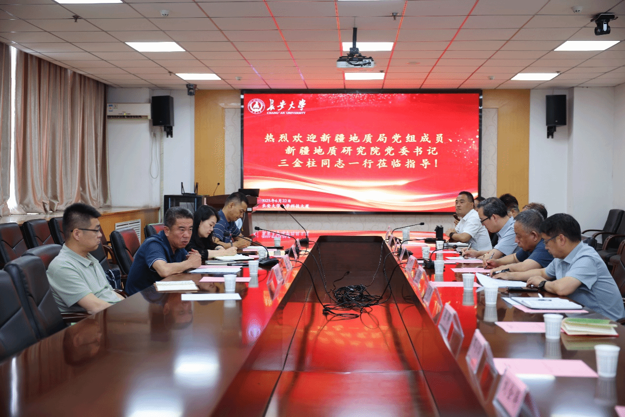 三金柱對(duì)學(xué)校在學(xué)科建設(shè)、科學(xué)研究、人才培養(yǎng)和社會(huì)服務(wù)等方面取得的突出成績(jī)給予高度贊揚(yáng),對(duì)母校的蓬勃發(fā)展表達(dá)衷心的祝福。三金柱簡(jiǎn)要介紹了新疆地質(zhì)研究院的發(fā)展歷程,希望在深地和兩重項(xiàng)目申報(bào)、人才隊(duì)伍建設(shè)和學(xué)生就業(yè)等方面,進(jìn)一步加強(qiáng)與長(zhǎng)安大學(xué)的合作和交流,為服務(wù)國(guó)家“一帶一路”建設(shè)、推動(dòng)新疆地質(zhì)事業(yè)高質(zhì)量發(fā)展注入新的動(dòng)力。