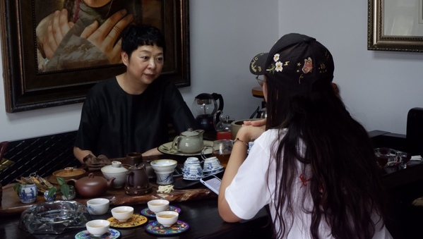 在深度調研當地集群產業園地之后,實踐隊前往位于茶花街的蜀繡工作室拜訪蜀繡傳承人——白樺。白樺的工作室與之前調研的蜀繡展覽館不同,這間個人工作室擺滿了超脫于傳統的作品——粉色花豹栩栩如生、異國少女呼之欲出、鎏金銅像躍然絹上。“對于傳統的東西,除了守護,更重要的是去改進,讓它適應現代環境,真正傳承下去。”白樺向實踐隊展示著她繡制的油畫風格作品。