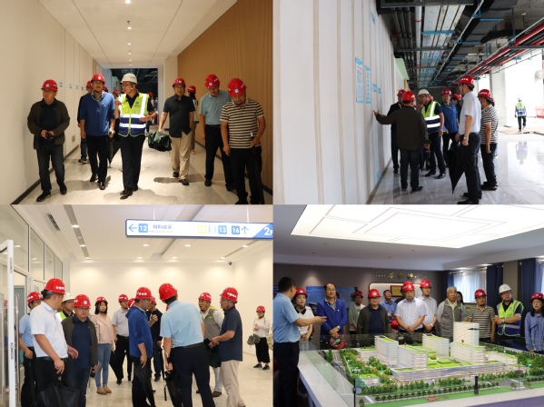 基建處、南校區住建辦黨支部對項目工地現場門診室、骨科診區樣板間,綜合管線,砌體工程,墻體抹灰,管道井等標準施工進行了觀摩學習。