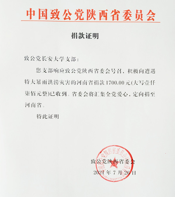近日,河南鄭州、新鄉(xiāng)等地遭遇特大暴雨襲擊,發(fā)生區(qū)域性嚴(yán)重洪澇災(zāi)害。災(zāi)情牽動(dòng)億萬國人的心。為了幫助受災(zāi)群眾抗洪救災(zāi),重建家園,致公黨長安大學(xué)支部積極響應(yīng)致公黨陜西省委的號(hào)召,秉承“致力為公、僑海報(bào)國”的宗旨理念,動(dòng)員支部黨員積極履行社會(huì)責(zé)任,向受災(zāi)地區(qū)捐獻(xiàn)愛心和溫暖。