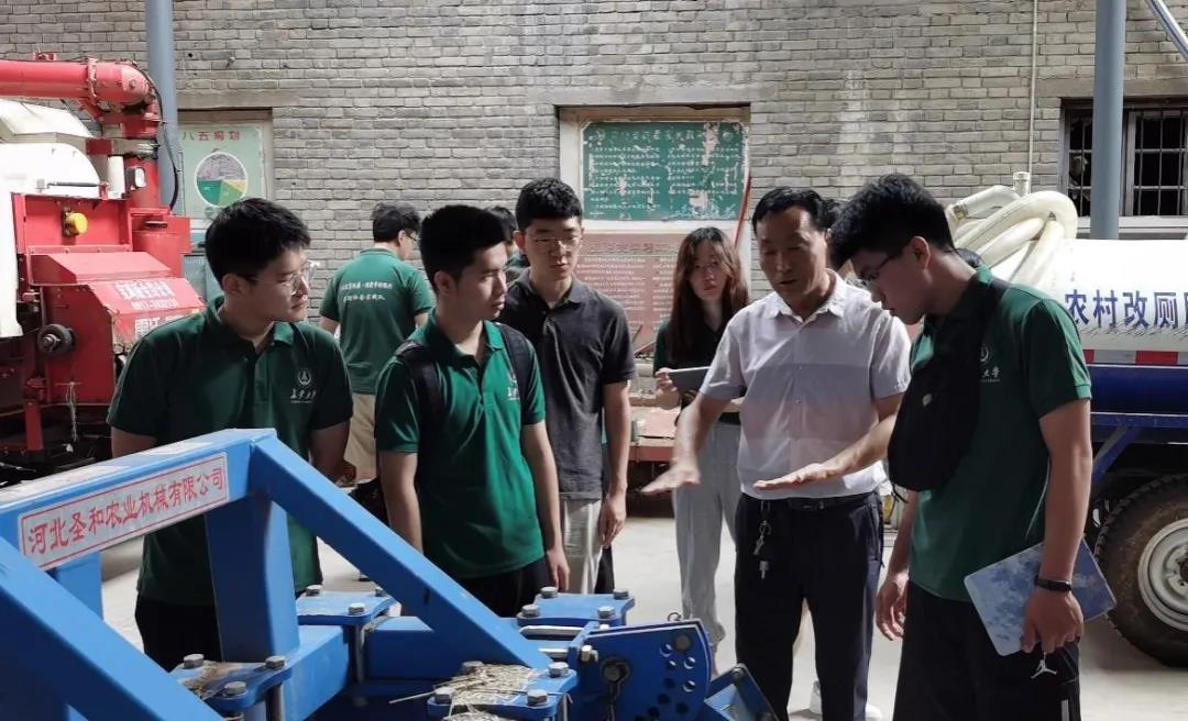 柳家塬村副支書楊忠強(qiáng)為實(shí)踐隊(duì)介紹大型農(nóng)機(jī)