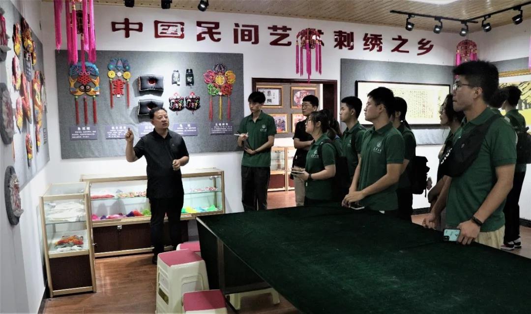 閆家村村委書記張青帶領(lǐng)實(shí)踐隊(duì)參觀西秦刺繡坊