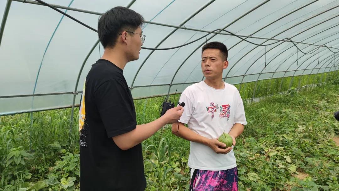 圖為實踐隊員采訪甜瓜大棚管理人員