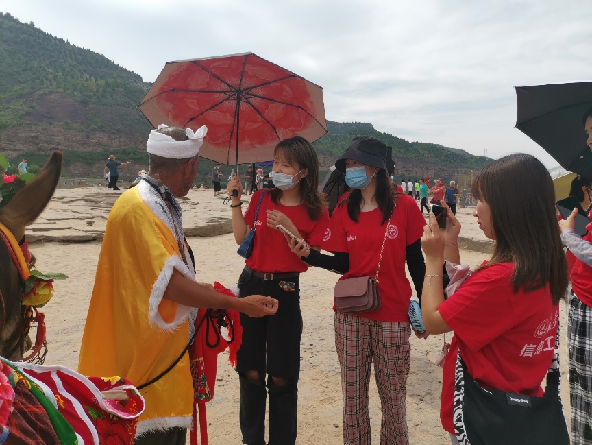 7月9~12日,社會實踐隊抵達山西省吉縣展開調研活動。7月10日在隊長的帶領下參觀了壺口瀑布景區,了解了景區的發展與運營的情況。隨后隊員分成兩組在景區采訪了景區內的商戶、經營騎毛驢合照項目的人員。景區的工作人員向隊員詳細介紹了吉縣近年的發展狀況,隊員在調研過程中切實深刻的認識到景區旅游業對吉縣的脫貧工作成功推進的巨大推動力。