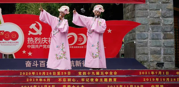 實踐隊走進商南縣試馬鎮(zhèn)、金絲峽鎮(zhèn)、青山鎮(zhèn)、富水鎮(zhèn)等地,通過精彩的文藝演出,為當?shù)卮迕袼腿ヒ暵犑⒀?。留學生通過專業(yè)的秦腔演唱、中文朗誦表達了對中國文化的熱愛;通過富有本國特色的舞蹈,向當?shù)鼐用裾故玖俗约簢业奶厣幕?/p>