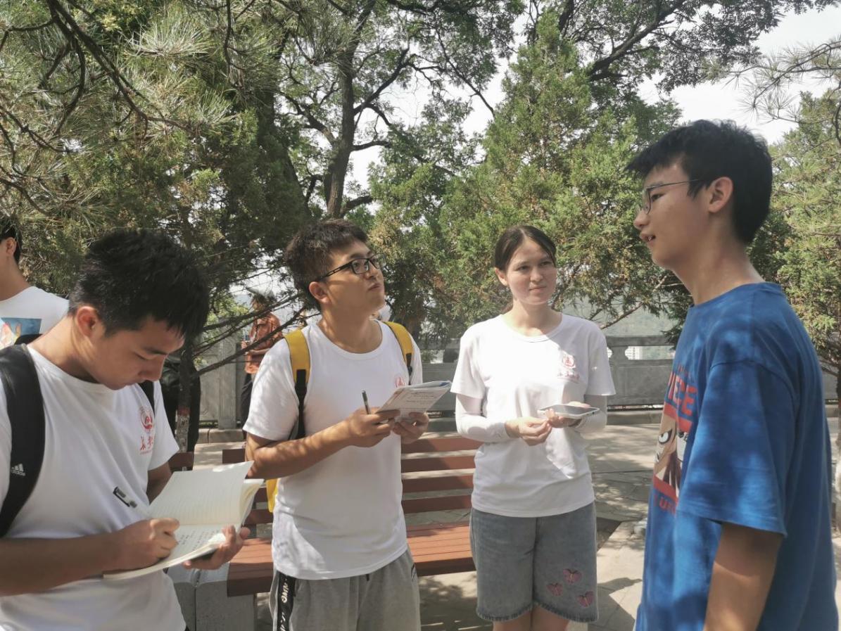 巍巍寶塔山,傳薪仰一燈。7月10日,實踐隊員來到延安寶塔山景區,延安寶塔是中國革命精神標識,也是大家心目中的圣地,實踐隊員們滿懷激情地踏上了登山之路,沿途參觀了紅色文物及展覽,聆聽了工作人員的講解,對延安精神有了更加深入的認識與體會。到達山頂后,隊員們首先在黨旗前表達了對黨和祖國的衷心祝愿,祝中國共產黨永葆青春,祝偉大的祖國繁榮昌盛;隨后,實踐隊員們以問卷調研和訪談的形式開展了弘揚延安精神的主題調研工作,在調研中,隊員們有幸采訪到了一名年過花甲的退役老兵,聆聽了他對延安的感情和對延安精神的理解。